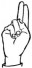 На ћирилици написано ПЕРИША ЗЕЧЕВИЋ састоји се из 13 слова [?]. Исписано ћириличном једноручном азбуком за глувонеме:
